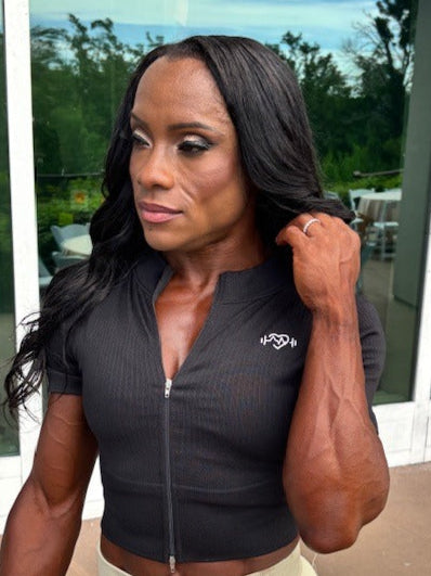 Soft Ribbed, Double-Zip, Short Sleeve Top